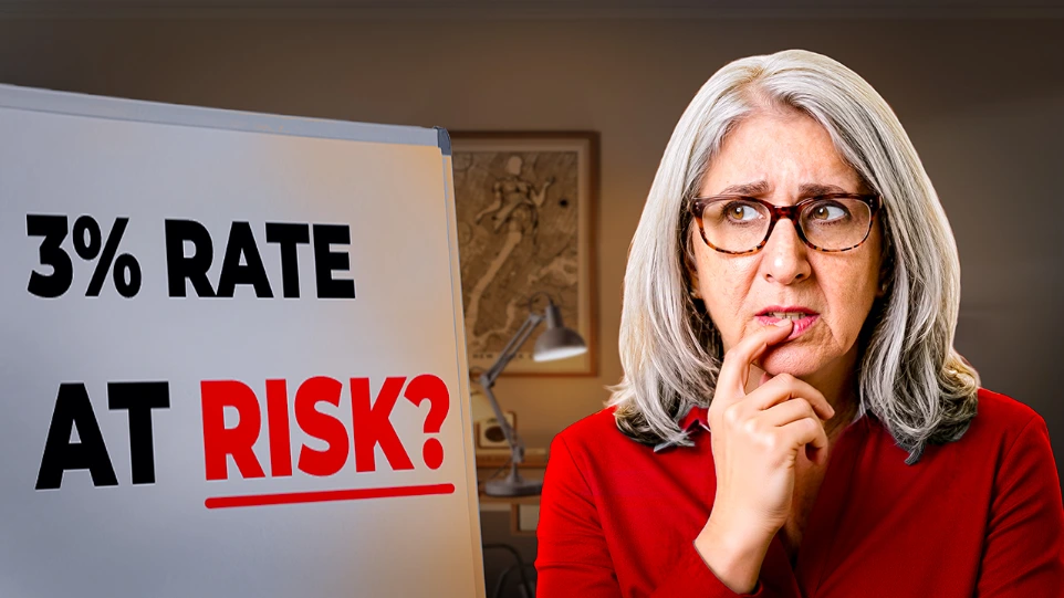The redesign corrects both. Intentional lighting separates the subject as a clear foreground element, the bold composition guides the eye in the right sequence, and "3% RATE AT RISK?" delivers a curiosity gap that the original never achieves. Same creator, same topic — fundamentally different result.