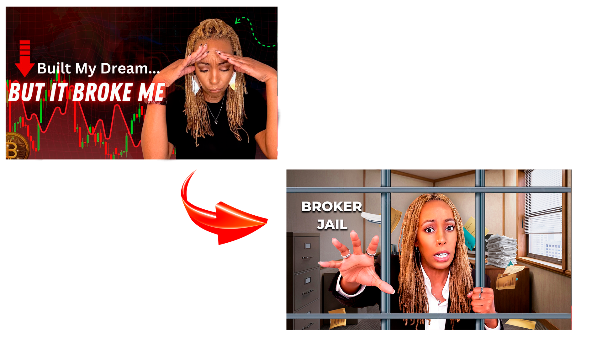 The redesign replaces emotional vulnerability with dramatic consequence. Jail bars inside a professional office create instant cognitive dissonance — and the host reaching outward, wide-eyed, turns a static portrait into a scene mid-action. That's the difference between a thumbnail people feel for and one they have to click.